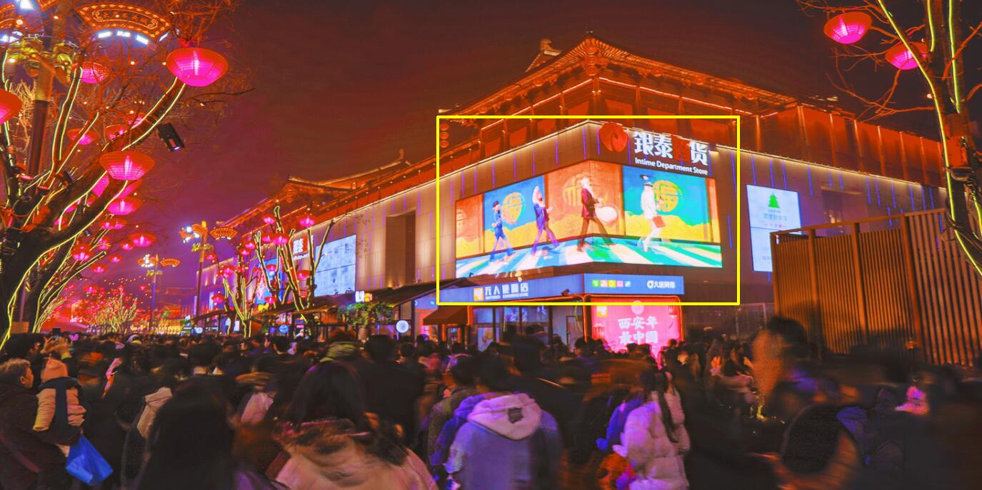 | 媒體詳情: | 該媒體位于西安曲江大雁塔以南雁塔南路也叫大唐不夜城現代唐人街,是西安市曲江CCBD及QCIC核心板塊,商務部提名全國11條步行街之一,地鐵三號線大雁塔及大唐芙蓉園兩站在這里匯集。獨特的設計大屏面向盛唐天街主路及銀泰A、B館之間區域,視覺投放高達270°,是春晚的主會場也是萬眾矚目的焦點。三屏聯動超大視野輻射范圍,引領時尚潮流的地理位置和最高技術的應用,創造超強的傳播效果,超震撼的視覺沖擊,為客戶提供超值服務。 |