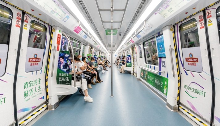 包含車廂看板、車窗貼、車門(mén)貼和車椅側(cè)貼,強(qiáng)曝光深觸達(dá),實(shí)現(xiàn)地鐵乘客全覆蓋列車的包圍感空間,為乘客打造沉浸式互動(dòng)體驗(yàn),品牌信息高效傳達(dá),達(dá)到廣告深度傳播的效果。
