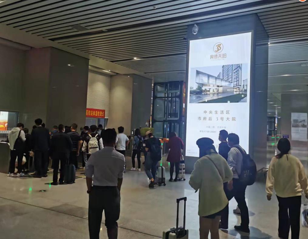 優(yōu)勢:覆蓋兩個(gè)站臺(tái)的所有到達(dá)旅客,位于扶梯上?,視線正對,百分之百的到達(dá)率。