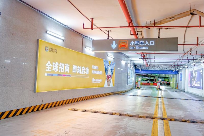 寧波高鐵站燈箱廣告-停車場進(jìn)出口墻體燈箱廣告