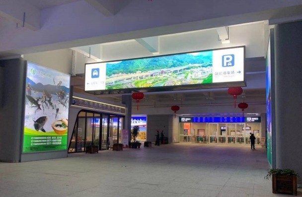 千島湖站出站廳檢票口落地雙面燈箱廣告