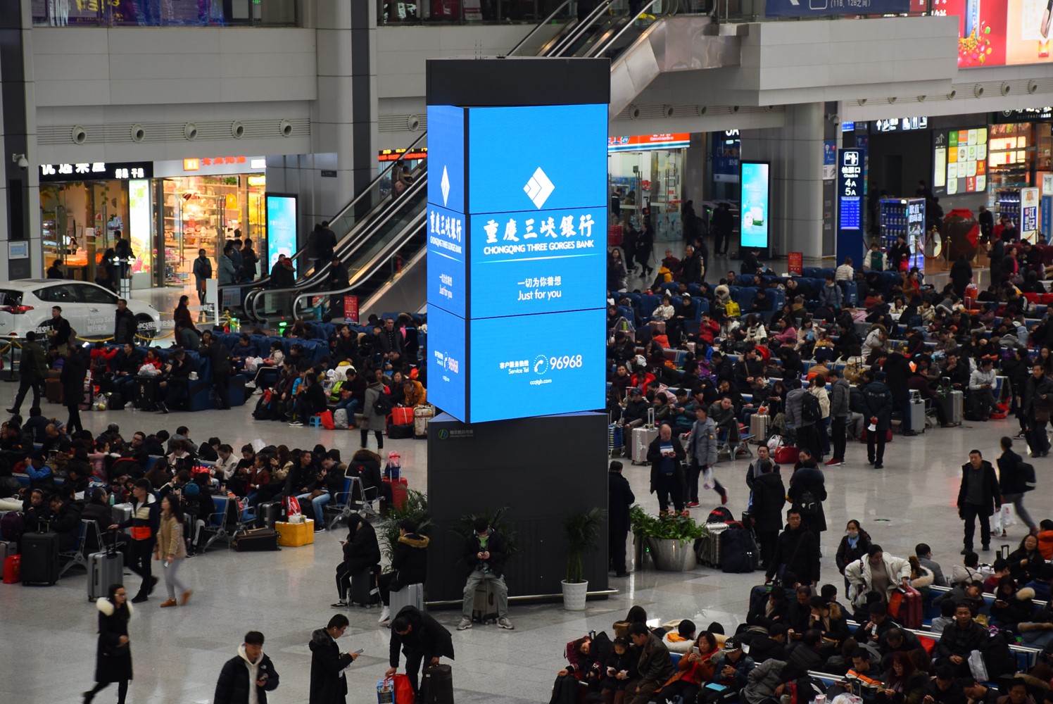 重慶北站站臺層四面落地燈箱