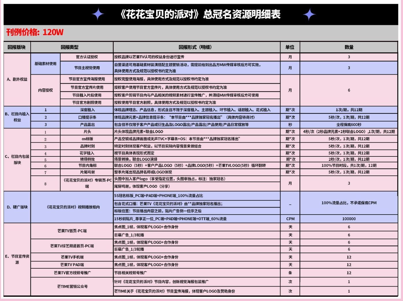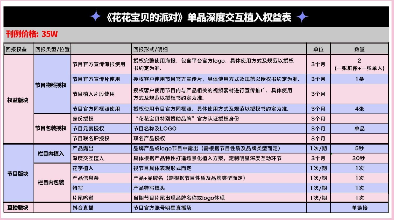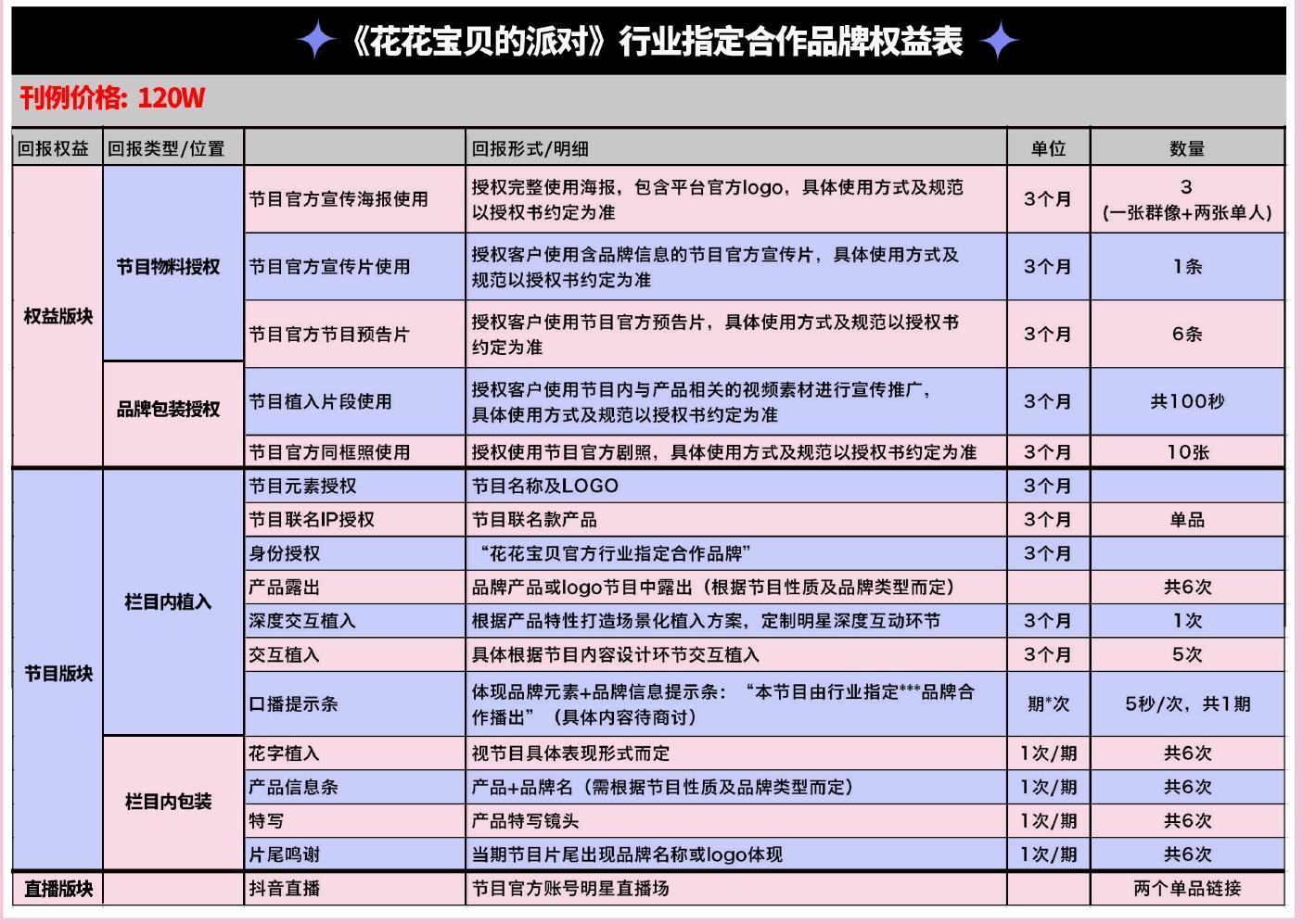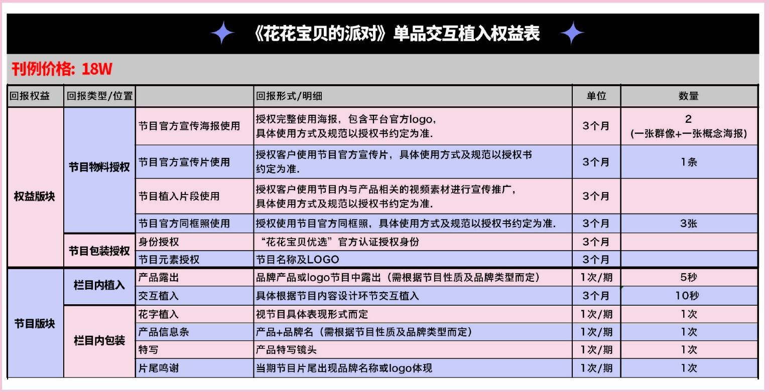 《花花寶貝的派對》綜藝總冠名資源明細表