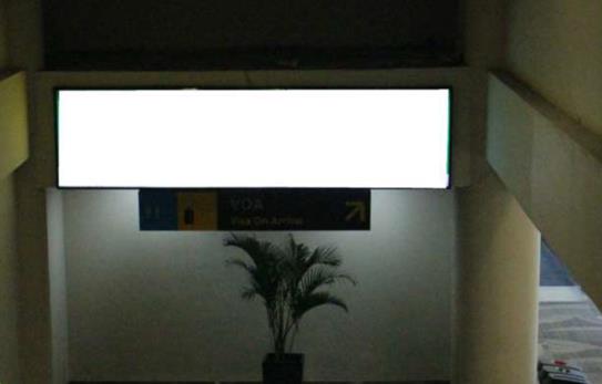 Placed on top of Arrival Escalator of Gate 4, ?facing arriving passenger off from airplane ? ?heading arrival hall / Visa On Arrival counters.