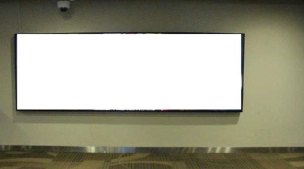 放置在左側的到達行李認領處天花板上。供在傳送帶周圍漫游以領取行李的乘客觀看