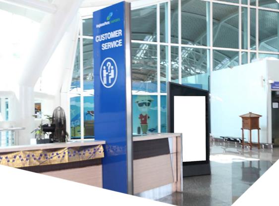 Placed next to Customer Service Counter at International Departure Hall, seen by passengers That hanging around the Departure Hall specially those who seek for Information Desk And other services needed