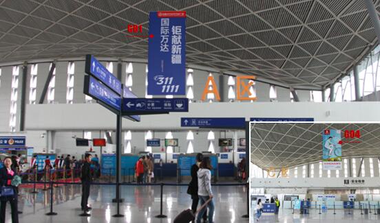 出發大廳值機柜臺上方懸掛吊旗廣告