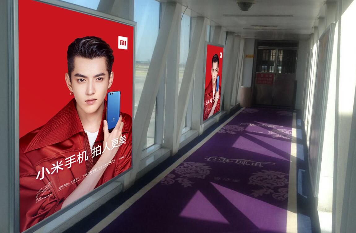 媒體位于T2航站樓9個廊橋移動段,100%覆蓋所有國內出發、到達旅客。