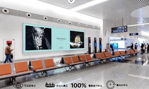 國內安檢口巨型屏幕,于機場內最具價值的國內安檢口正上方