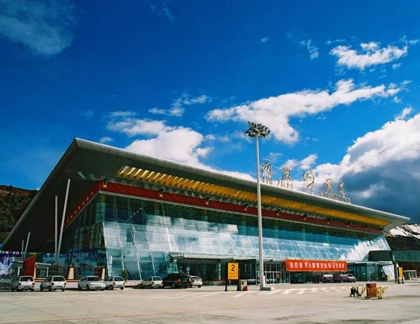 九寨黃龍機場,2003年建立,位于四川省阿壩州松潘縣境內的川主寺鎮北約12公里處,是阿壩州的首個機場。