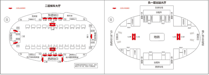 北京南站地下一層燈箱廣告和候車廳廣告區別