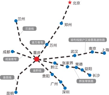 國家將重慶定位為國家綜合性鐵路樞紐和國際性綜合交通樞紐。重慶北站鐵路綜合交通樞紐以承擔滬漢渝蓉客車作業(yè)為主,實現(xiàn)沿江通道中成渝中線高鐵與渝漢高鐵的貫通運行。隨著渝貴鐵路的正式通車,重慶邁入全國高鐵線路密集城市的腳步變得更快了。