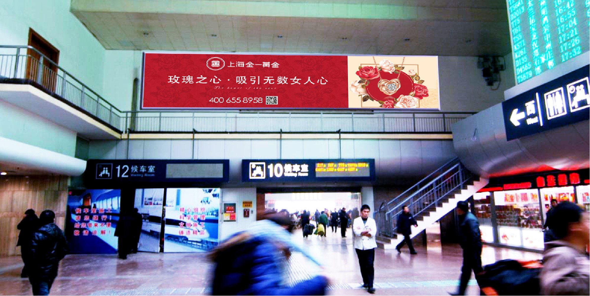 媒體優勢:覆蓋所有進站人群,彰顯品牌實力。1、進站必經,強制閱讀——該媒體位于北一層進站大廳,強制覆蓋所有進站人群,到達率100%。 2、大畫幅展示——巨幅畫面凸顯品牌氣勢,彰顯品牌實力。
