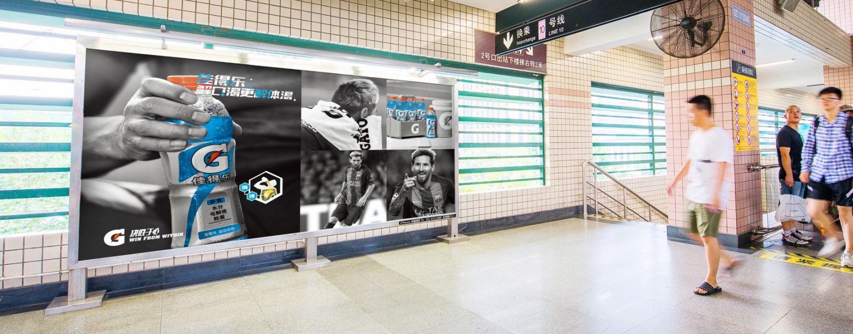 5.9m*2.8m,視覺效果強烈 創意空間大,彰顯品牌大氣 全線共有20塊,均為換乘必經區域