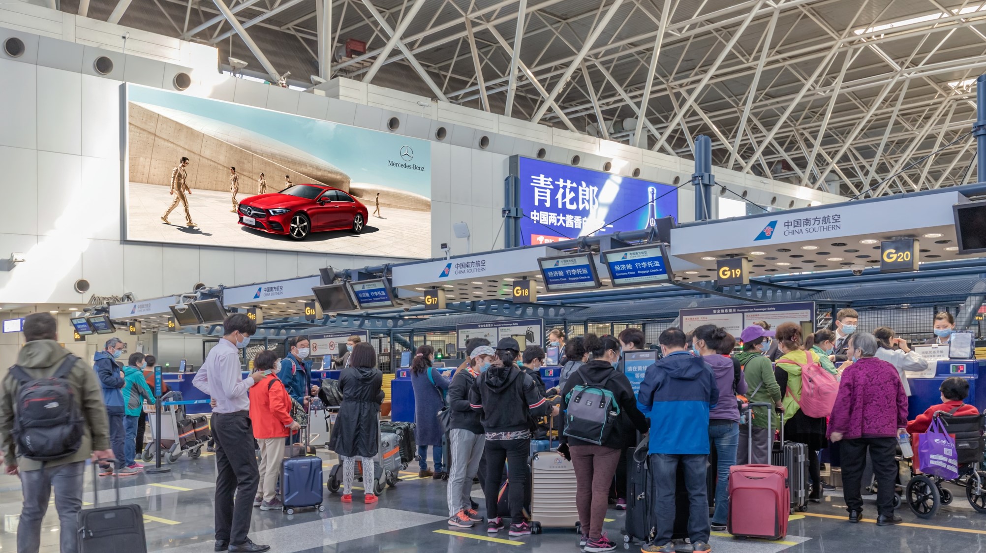 北京首都機場廣告,首都機場T2航站樓值機大廳廣告