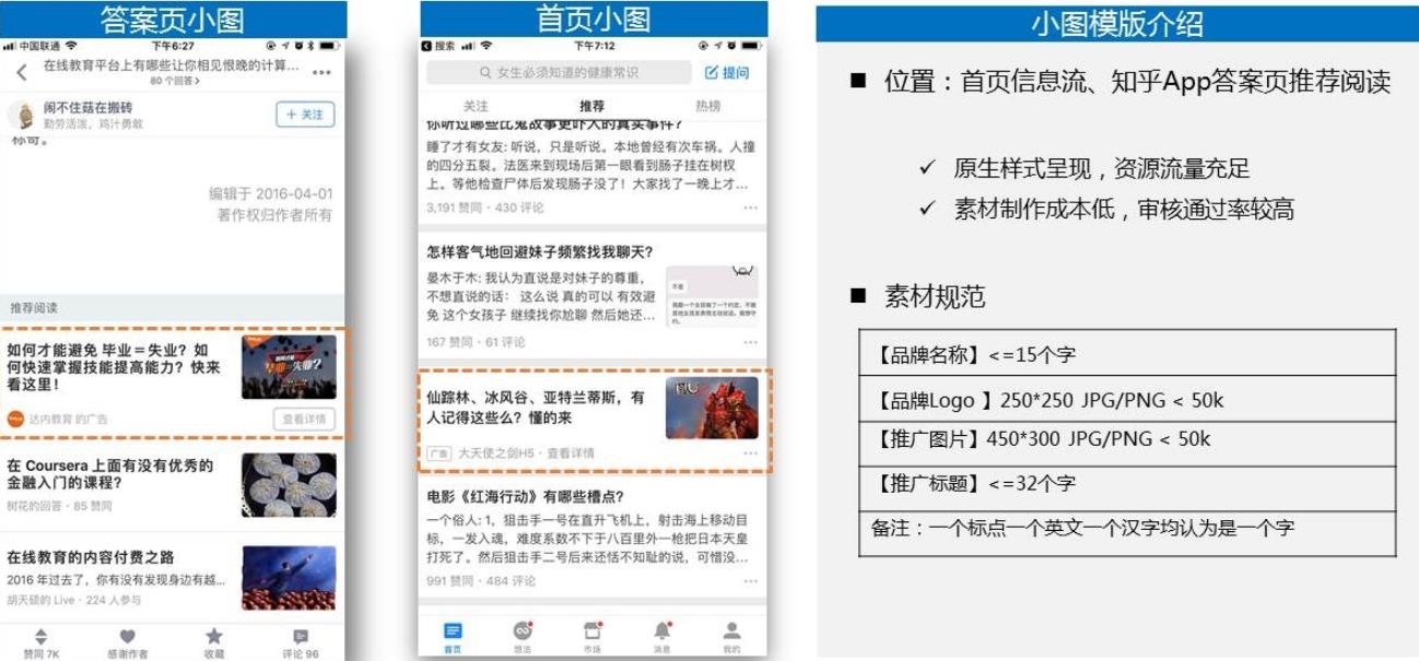 如果說微博、SNS等產品是滿足了人的社交(社會關系)需求的話,那么,知乎等問答社區則是滿足了人的最高層次的兩個需求:尊重(社會承認)和自我實現的需求。尤其是在這個“往來無白丁”的精英社區,回答的問題被專業人士、名人所“贊同”和“感謝”,頂層需求的強烈滿足感比其他任何激勵措施都更加持續有效。知乎信息流廣告產品簡介