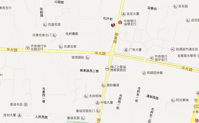 商業:華光路柳泉路路口,東有小學、銀行、大潤發超市,西有中學、廣電,北有沃爾瑪超市、大型住宅區、寫字樓等形成核心商業圈