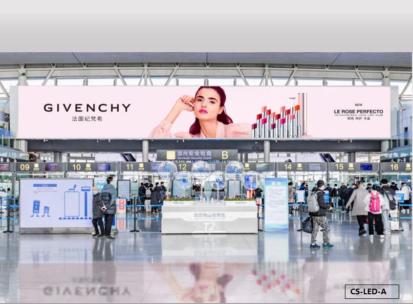 長沙黃花機場廣告- 長沙機場T1&T2航站樓安檢正上方led廣告