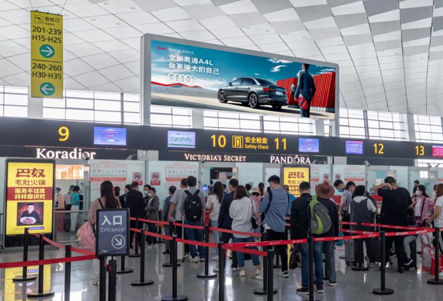 鄭州新鄭機(jī)場四層出發(fā)安檢口led廣告,萬事成傳媒