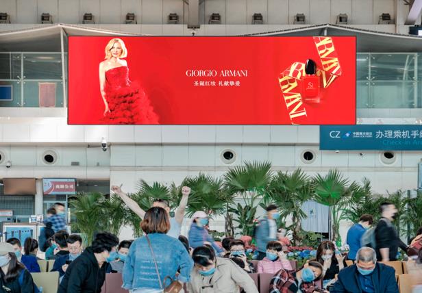大連周水子機(jī)場國內(nèi)航站樓出發(fā)大廳led大屏廣告,萬事成傳媒