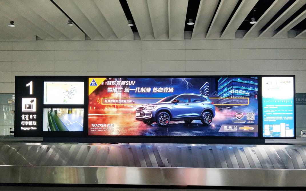 鄂爾多斯伊金霍洛機(jī)場國內(nèi)到達(dá)行李轉(zhuǎn)盤led廣告,萬事成傳媒
