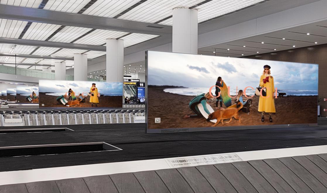 青島膠東機場廣告-1F國內(nèi)到達行李廳出口正上方led廣告