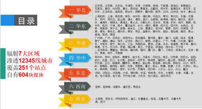 28個省市、251個高鐵站、604塊大屏、1、2、3、4、5先城市全覆蓋,98%獨家經(jīng)營。
