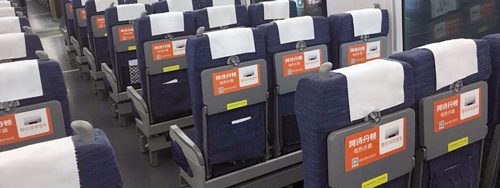 位于所有高鐵車廂內行李架下方,對稱發布,氣勢磅礴,視覺沖擊力強,無論坐、立、行,都能有絕佳的視覺效果,利于品牌整體性展示。