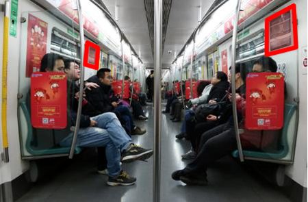 北京地鐵車載LCD電視-車門(mén)側(cè)最優(yōu)位置,車內(nèi)唯一有音源的媒體形式,更能吸引乘客關(guān)注。