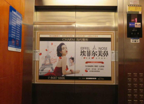 樓宇電梯廣告媒體是新型廣告媒體,它是指在城市樓宇電梯門或內壁上制作的廣告載體。在北京、上海、廣州、深圳、杭州等地一經推出,即受到包括金融、IT、醫療、快消品、通信、家電、科技等眾多廣告客戶的青睞和使用。戶外廣告要達到細分目的,必須在內容、發布方式、地點方面進行突破,由原來的粗放型向集約型發展。這種新式媒體覆蓋面廣、受眾率高,我們稱之為“電梯門廣告”。與傳統戶外廣告相比,電梯門貼廣告發布于整個電梯門面上,簡單、精致、吸引,內容多為發布方便、制作精美的大型海報和招貼。