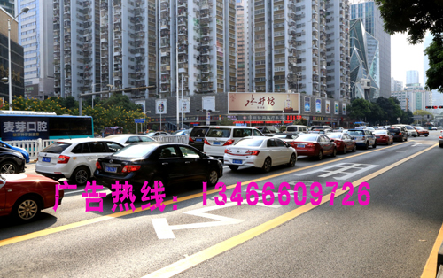 廣告位位于深南大道與華強北路交匯十字路口,處于繁華的十字路口,廣告牌下方是地鐵出入口。周邊設置有諸多紅綠燈,故時刻都有長長的車龍等候在此,通常司機對廣告牌的關注時間長達三分鐘之久,上下班高峰期必塞。同時,該廣告牌是深南大道唯一的地鐵風亭站頂廣告牌,展示面積大,視覺效果極好,可視距離極遠,視覺沖擊力強,無干擾。廣告牌分別垂直于深南大道,華強北路,觀看高度適中。廣告牌右鄰華強北,西鄰市民中心,南鄰濱河大道,東鄰小平畫像,是深圳的CBD交通核心,是企業主展現品牌的理想之地。