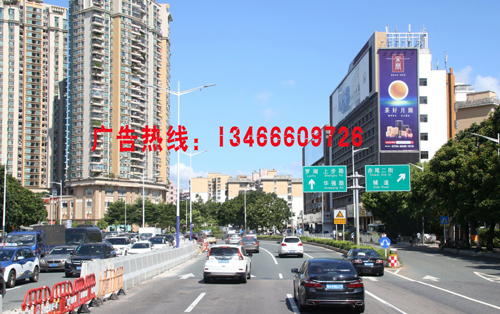 濱河大道是中國廣東省深圳市的一條道路,位處深圳特區南面,連接東西。是深圳車流密度最大的主干道之一,而寶安南路是連接市中心的交通要道,因此廣告牌垂直于路面,大氣美觀,處于十分顯眼的位置,可視距離非常遠,視覺效果十分突出,該廣告牌能覆蓋了羅湖,福田,南山往來的車輛及人群,受眾廣泛且層次高。