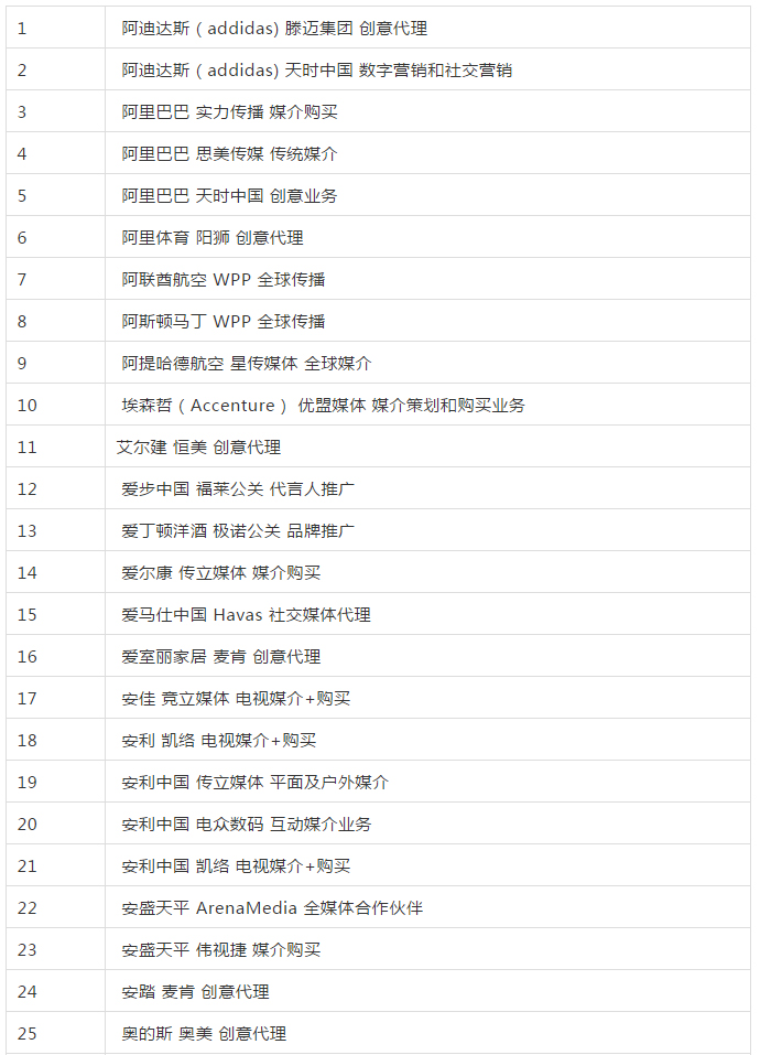 2019年全國(guó)品牌 4A廣告代理公司